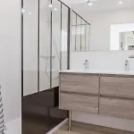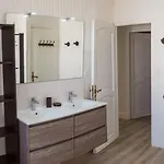 Diese Unterkunft in Saint-Martin-de-Ré verfügt über ein Badezimmer mit einer begehbaren Dusche und einer getrennten Toilette. Es gibt einen Haartrockner für den Komfort der Gäste.